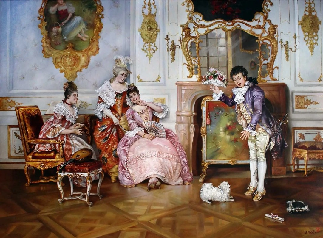 Canvas, oil. The picture was made using the techniques and techniques of the old masters. Free copy from a painting by Austrian artist Leopold Schmutzler, 1864-1941. Painting available.
