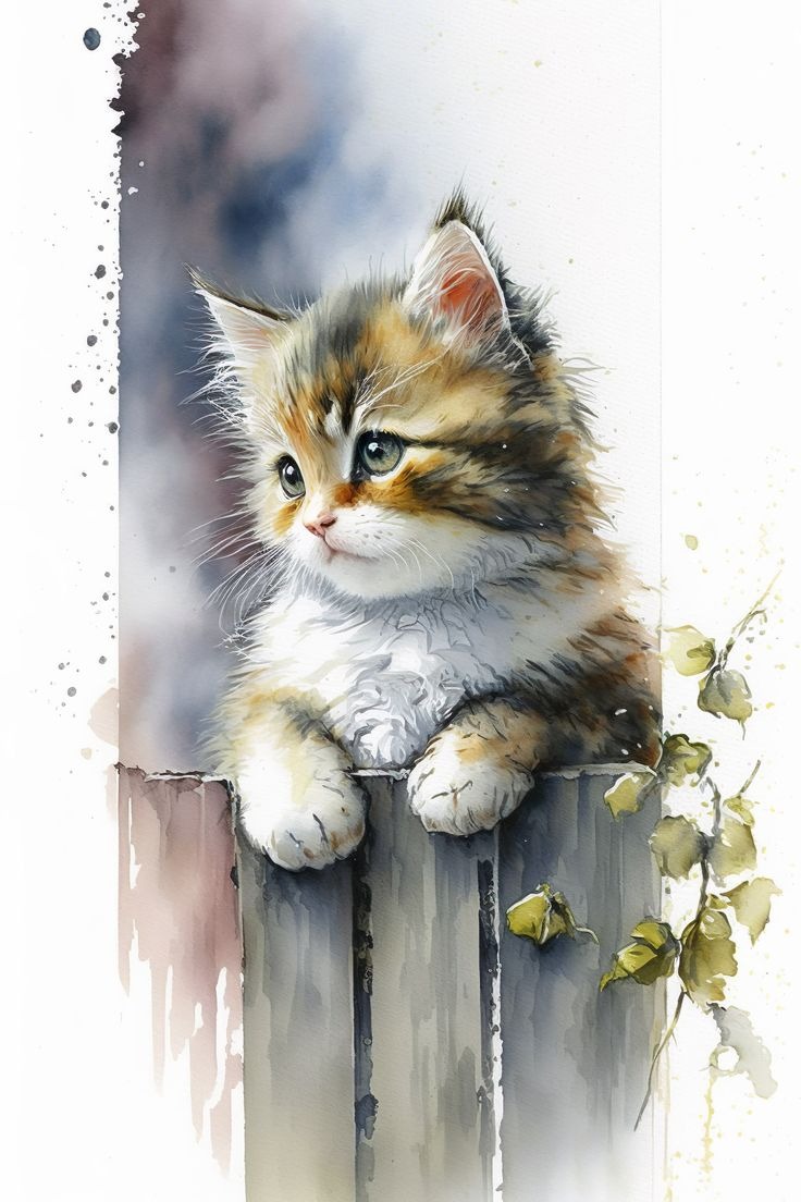 Cute Kitten on Fence Watercolour by ArtTwirled
