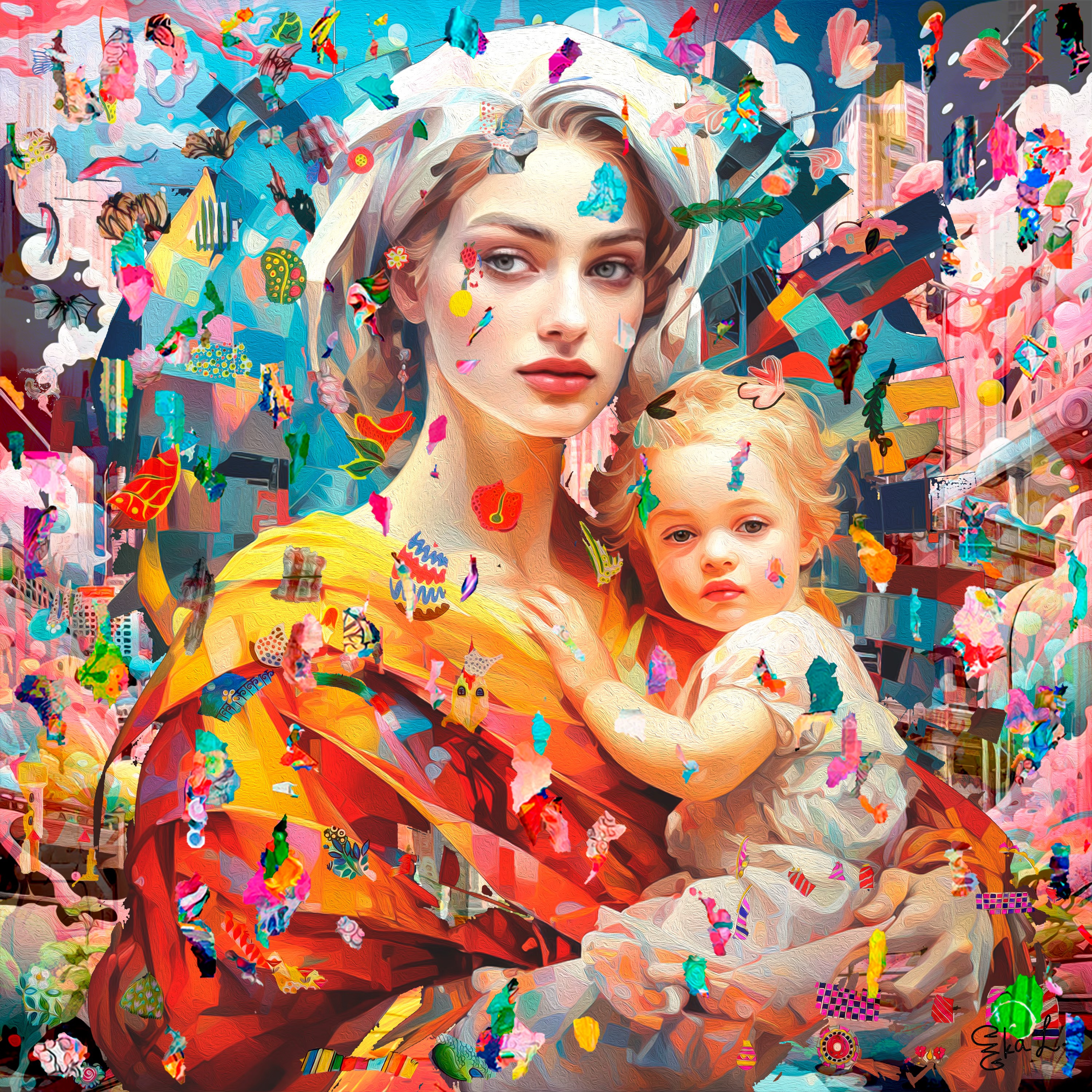 Embrace is a mesmerizing and emotionally charged artwork that captures the essence of maternal love in the realm of Crypto Baroque. The piece is a vibrant, multi-layered digital composition that combines intricate patterns and flowing forms, creating a harmonious fusion of colors and textures.