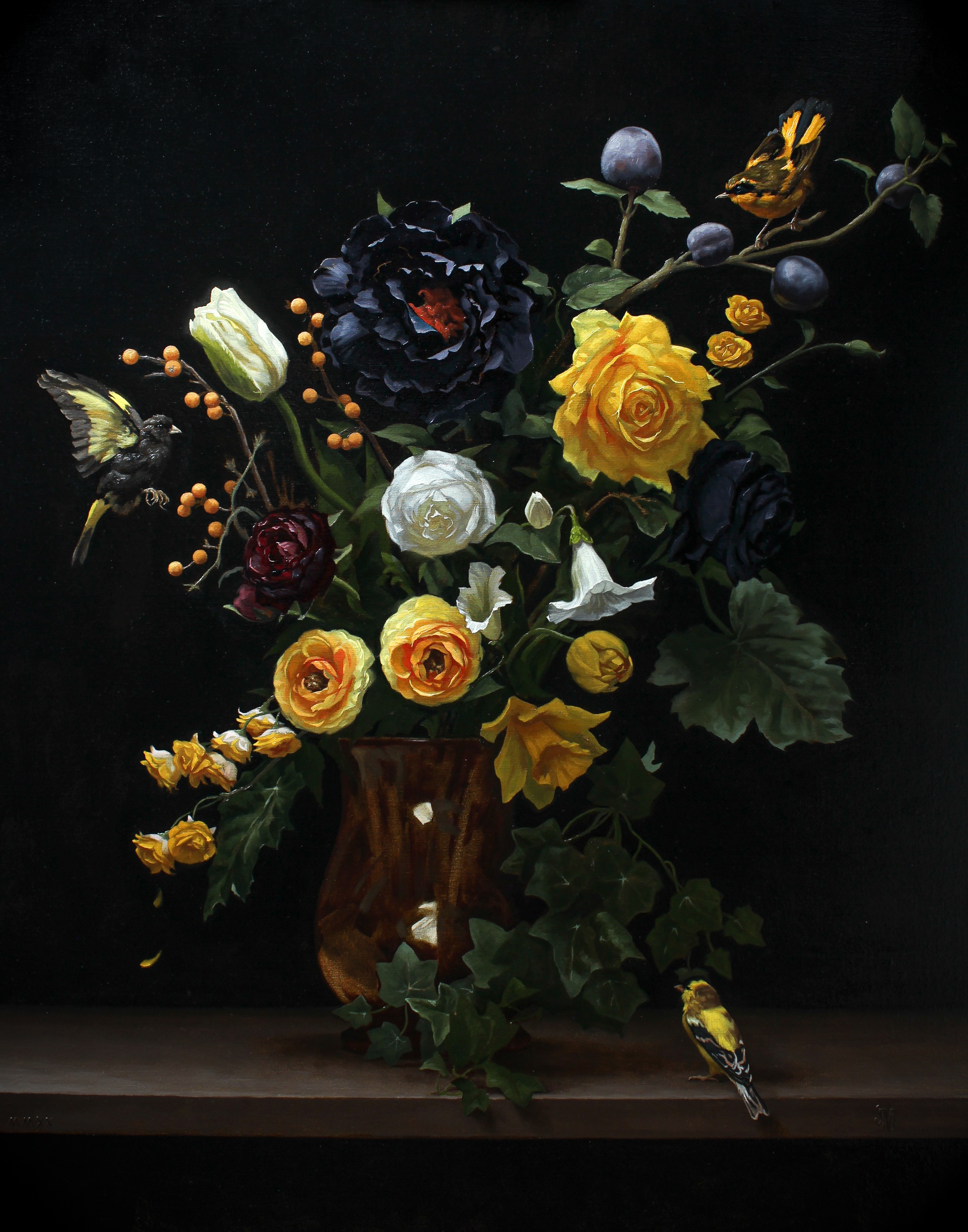 Floral Composition With Birds in the Dutch Manner (2020) by Sarah-Margaret Gibson