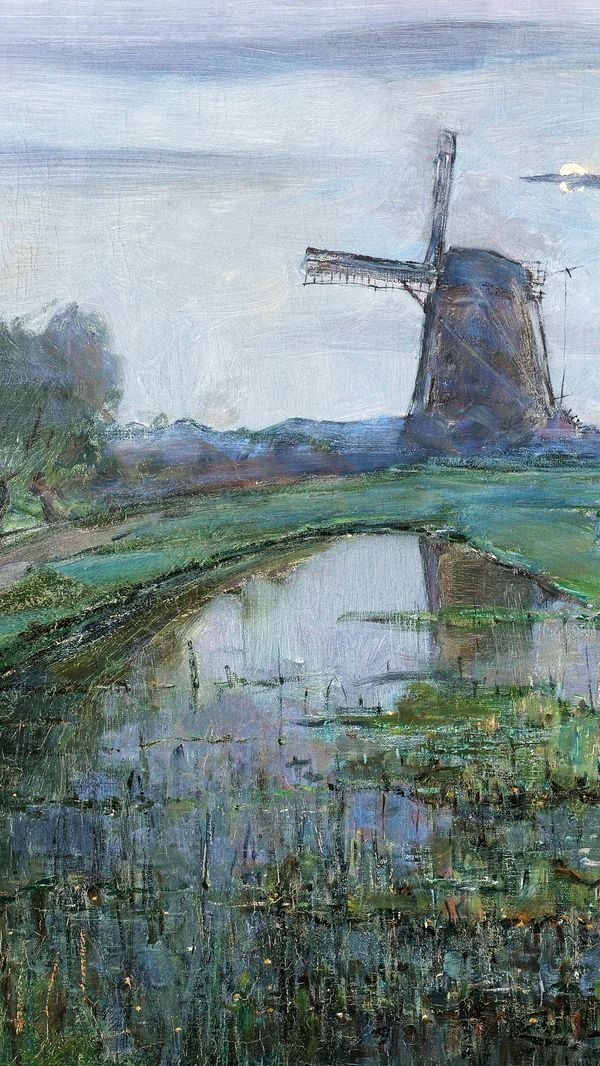 Mondrian’s River Gein by Moonlight iPhone wallpaper, oil painting