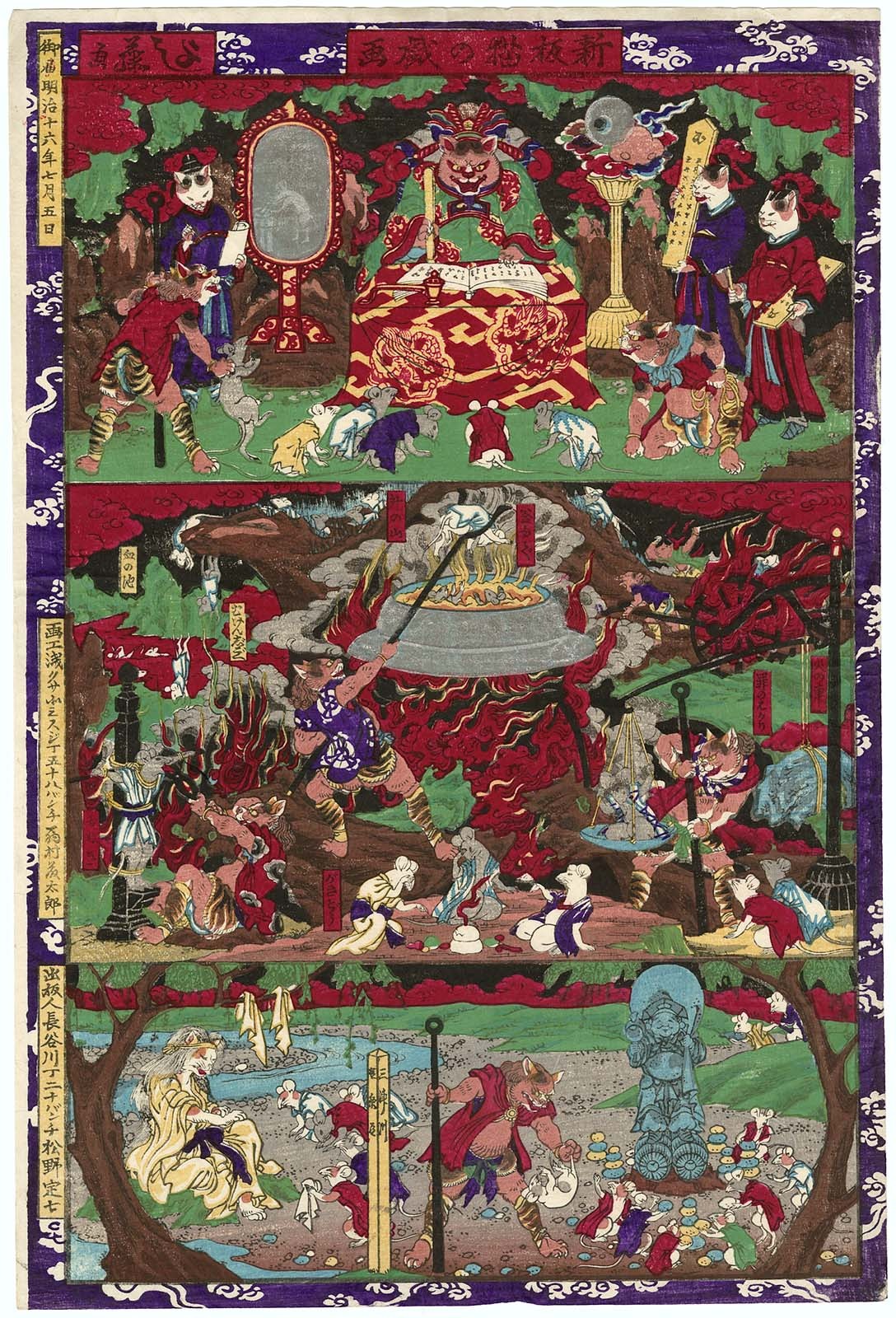Newly Published Comic Picture of Cats (Shinpan neko no giga) (1883) by Utagawa Yoshifuji
